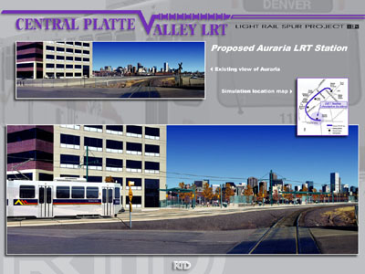 Graphic artists at POITRA set the simulation in a display board format with simulation location map for printing. The finished displays were used in meetings with the city, Auraria representatives and public stakeholders. The final images were also used in project environmental documents.