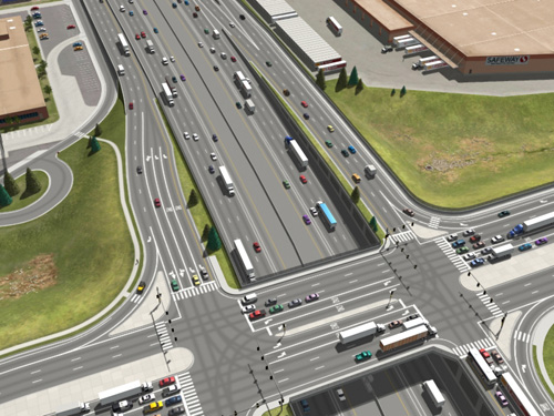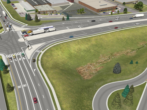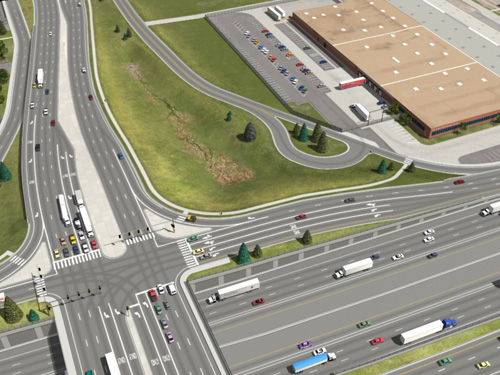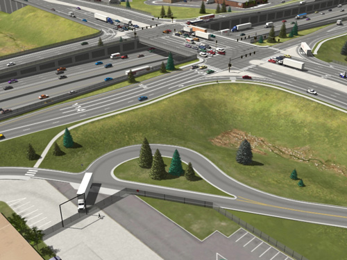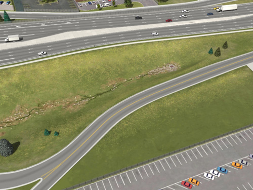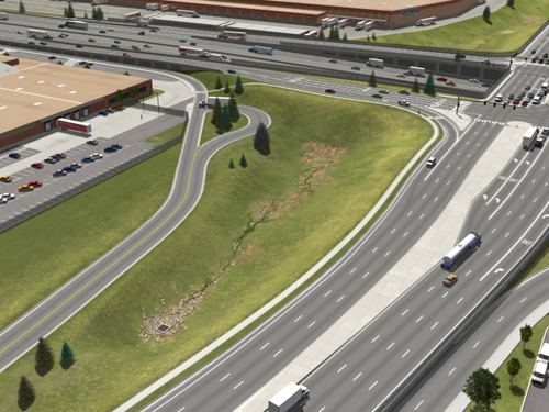 2. 3D Animation of the I-70 Corridor: An animated camera follows I-70 from Brighton Boulevard to Dahlia Street placing the detention ponds and drainage systems, located at Brighton Boulevard, York Street, Vasquez Boulevard/Steele Street and Colorado Boulevard, in context with the rest of the transportation project. 3D Animations Click thumbnail images at right to toggle the animated 3d model visualizations:
