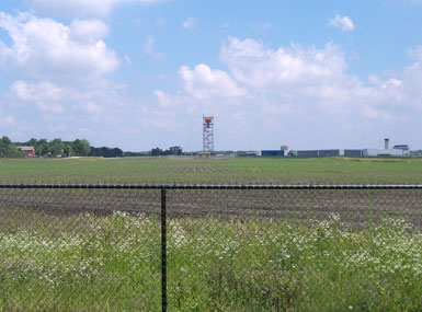 POITRA modelers created a detailed 3D model of the ASR9 Radar Antenna and the proposed 76ft tall tower. An equipment building, site fencing and gates from POITRA model libraries were also used to create a site model to be rearranged and used in all of the simulations. The site model was camera matched to the B3 base photograph, lighted and rendered. The renders were then composited to the base photograph and traditional digital painting methods used to finish the simulations.