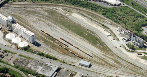 POITRA photographers made an aerial photo survey of the site by helocopter from which the simulation base photograph was to be selected. The Railroad decided on a view that included the transportation options which would be an important component in site selection.