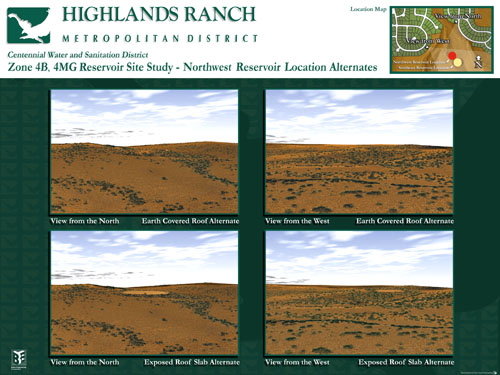 A new 4 million gallon (4MG) water storage facility was under design for the Highlands Ranch Metropolitan District in Colorado. The new facility called for a large buried concrete reservoir to service planned residential development. Visual impact from the project was a concern.