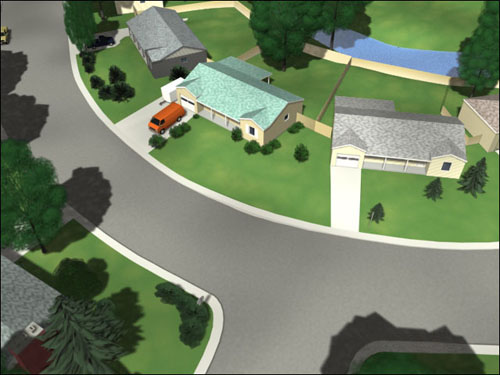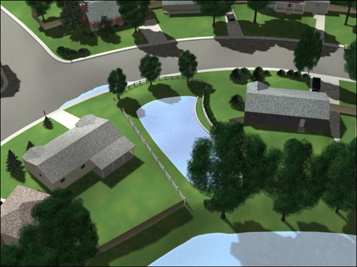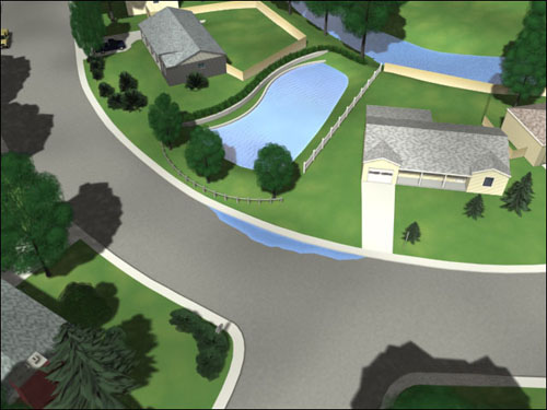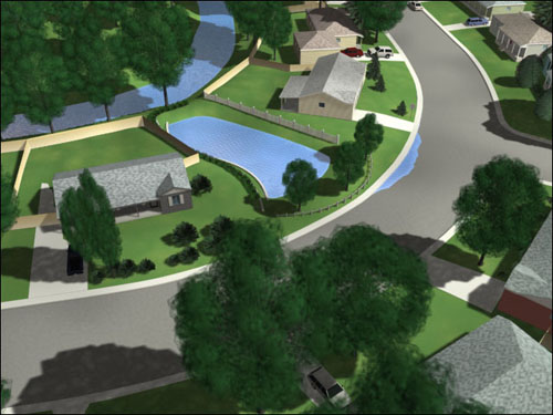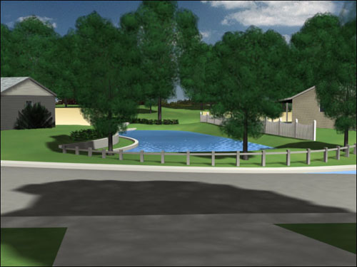 2. 3D Animation of the Holly Hills Detention Pond 3001: A still camera views the 3001 detention pond from the north as the water rises to the ultimate 100 year storm level and overflows into the High Line Canal.