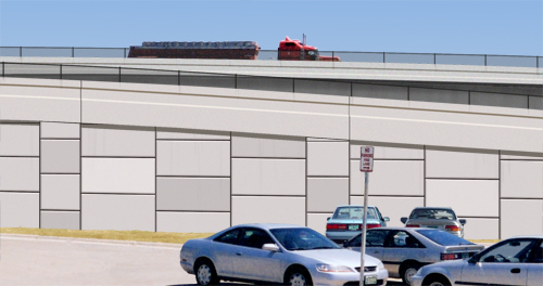 Modelers at POITRA then created 3D site models that included the ramp on bridge structure and the ramp on walls. Since the main viaduct was not yet constructed the entire viaduct superstructure also needed to be modeled. The site models included concrete jersey barriers, chain-link splash fencing and mechanically stabilized earth (MSE) wall panels. These models were camera matched, lighted, rendered and composited with the base photograph to create a final photosimulation for each alternative.