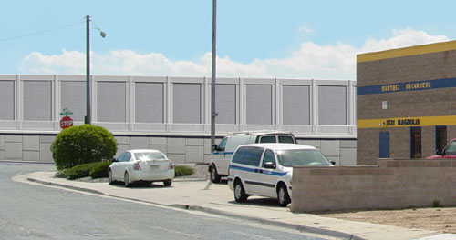 An illustration was needed to visually demonstrate the retaining walls and sound barriers that would typically result from the widening of I-270. The two alignments would be shown at a single location with photosimulations in order to compare the alternatives in context. As with earlier segments of the corridor matching mechanically stabilized earth (MSE) walls and post and panel sound barriers would be used.