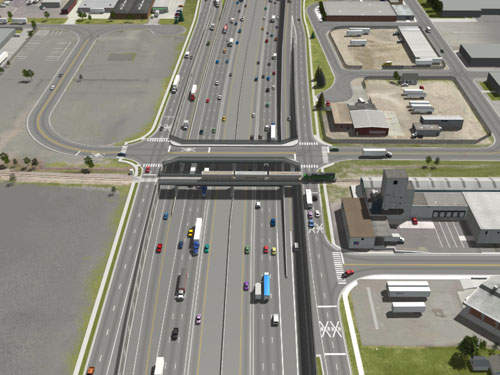 POITRA modelers laid out the project from concept level plans. Profile grades of I-70 and the interchange ramps as well as connections to cross streets had to be carefully managed to ensure that all vertical clearances were correct and the roadway surfaces met up as planned. Changes to the design during construction of the 3D model were cause for major concerns.