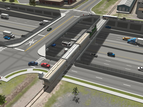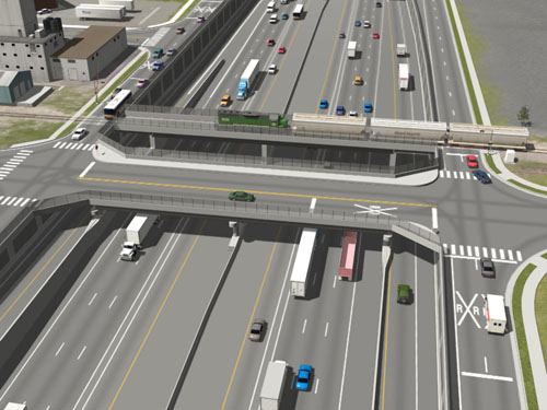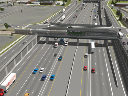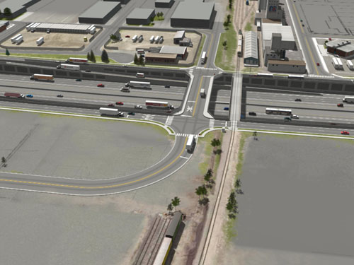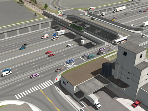 Once the FEIS 3D model updates were complete POITRA modelers rendered a large series still views for each major node: interchanges, overcrossings and the storm water system. A series of animations were also rendered for each node which included moving traffic and even flowing water. The animations were created in High Definition (HD).