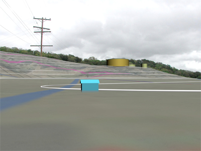 POITRA modelers created a 3D terrain model from site contours and trail plans. The site model was matched to the base photograph to ensure the trail and its cuts and fills were correctly located. The positioning of the trail on the property was of paramount importance to the agreement.