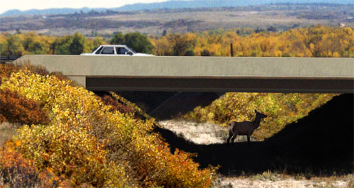 US85 intersects a major Colorado wildlife corridor. The EIS determined that a grade separated crossing would prevent numerous animal vehicle accidents and protect public safety. The EIS widened US85 includes twin single span concrete I-girder bridge structures that are open enough to ensure their use by animals as a safe way cross US85. POITRA illustrated the concept for the EIS document.