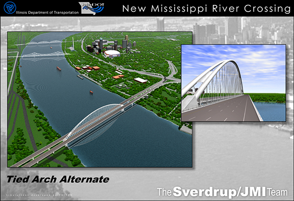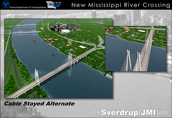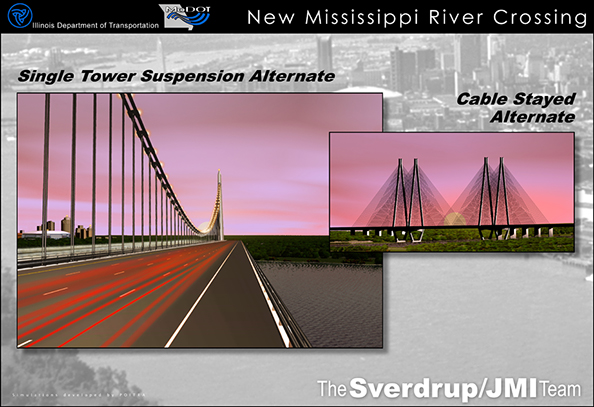 In a proposal to the Missouri and Illinois Departments of Transportation, POITRA Visual used 3D design visualization to demonstrate the ability of the Sverdup and JMI Team to communicate multiple bridge design concepts during the public involvement process. The project called for a new Gateway Crossing over the Mississippi River near downtown Saint Louis.